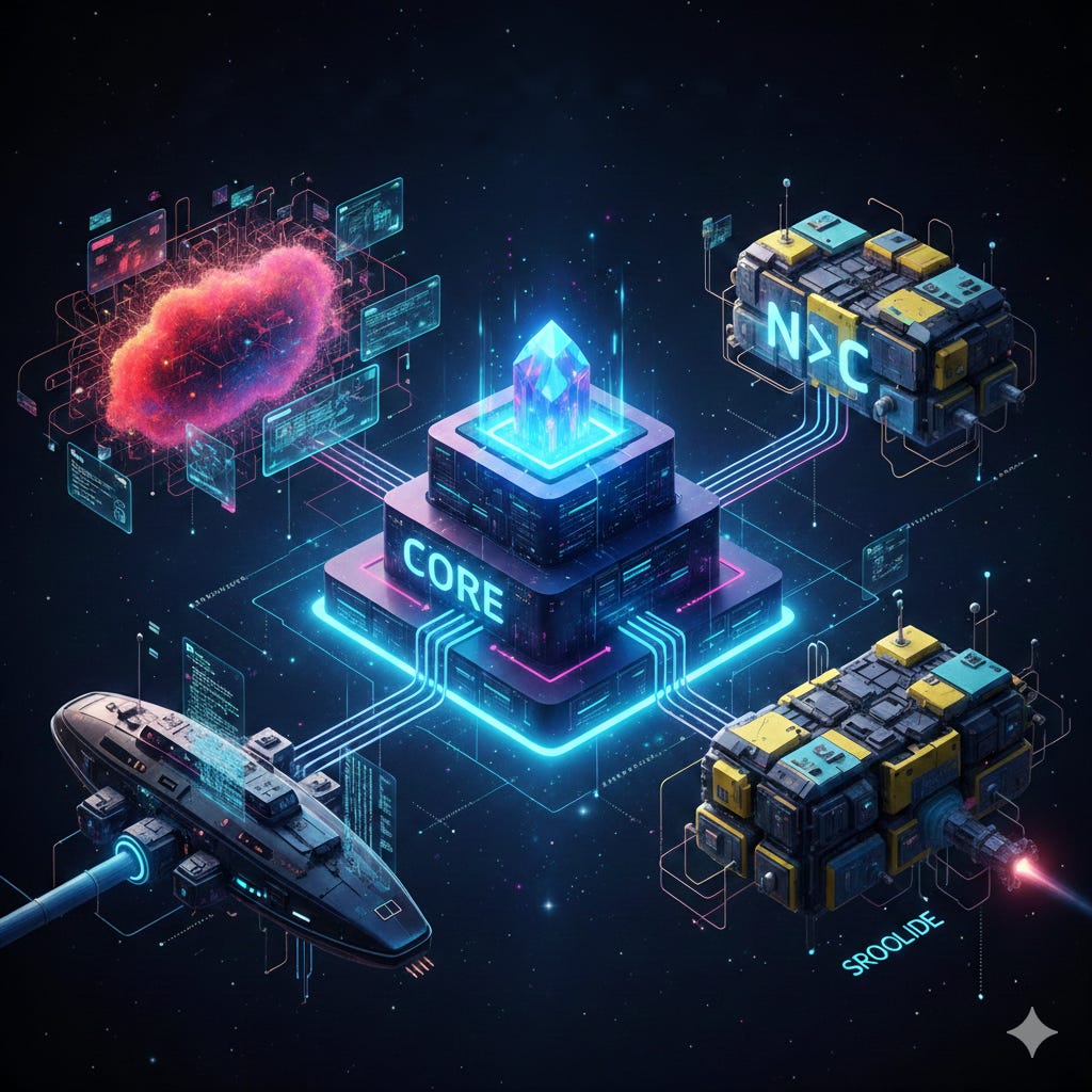 The core absorbs high load, cross-system dependencies, and mission-critical workflows. It doesn’t move fast. It moves right.